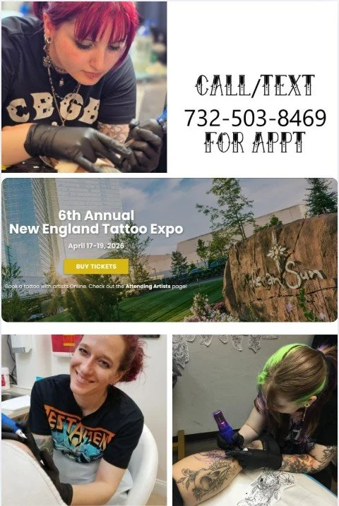 This year we start the convention season off with New England at Mohegan Sun in CT. Caroline has been attending this convention since it’s inception and this year she is bringing both Koryn and Casey. This convention is so much fun, they cant wait to get there. Join in the fun and get a tattoo! They all still have appointments available, but are filling up quick! Call/text 732-503-8469 to save your spot today!